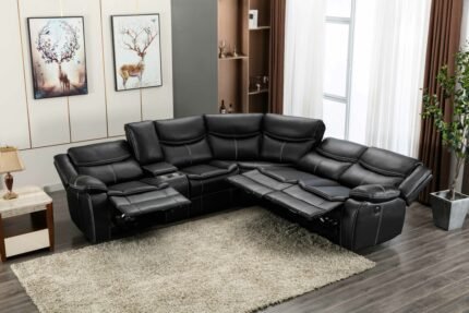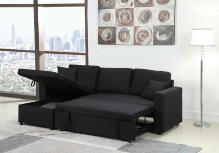 BLACK Faux Leather Reversible Sectional Sofa w/ Power & USB