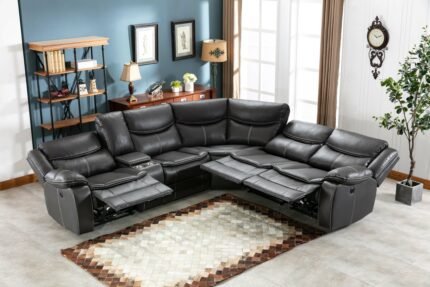 GRAY Faux Leather Reversible Sectional Sofa w/ Power & USB