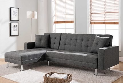 Gray Tufted Linen Fabric Reversible Sectional Sofa Bed