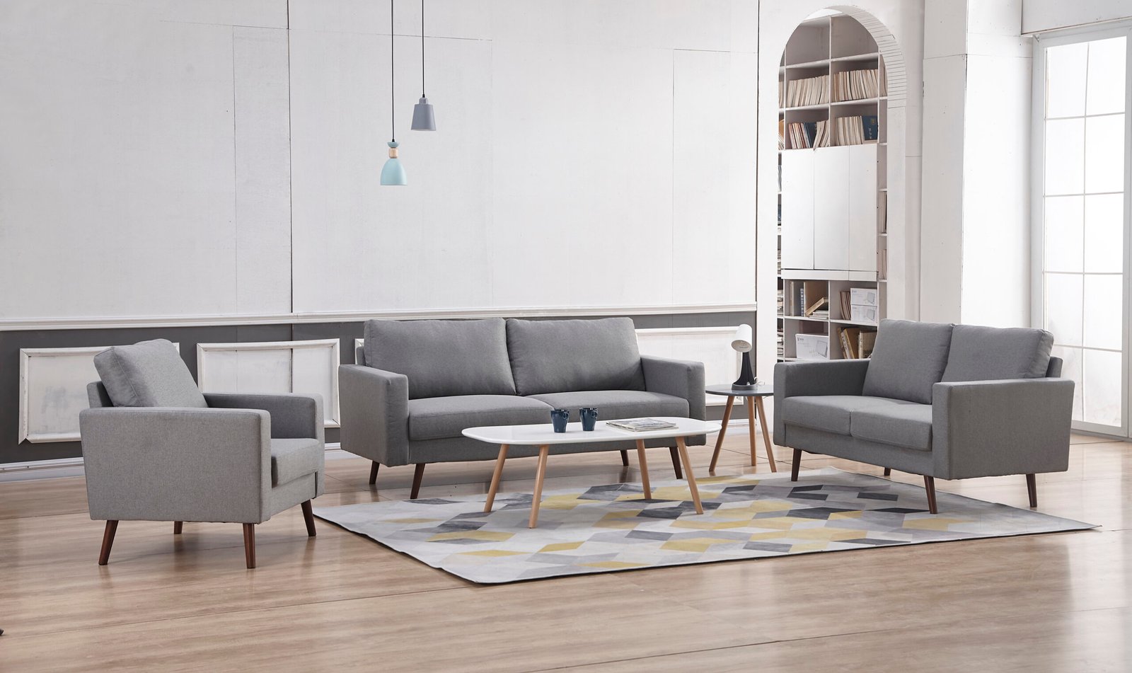 Home Living Room Living Room Sets 3PC LIGHT GRAY Linen Stationary Basic Living Room SET