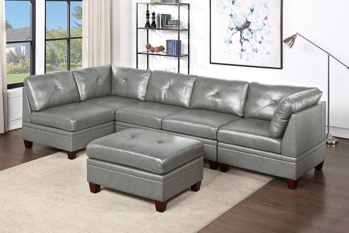 6 Pcs Grey Grain Leather Sectional