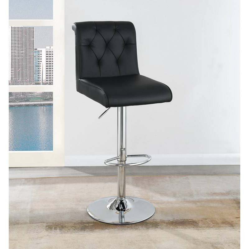 Adjustable Black Barstool. Having comfortable seating to host family and friends. And this adjustable bar stool with a button-tufted design is the right choice for you. The backrest, the footrest, and the functional height adjust just becomes a cherry on top when you enjoy a meal or a drink. Available in black, white, and espresso.