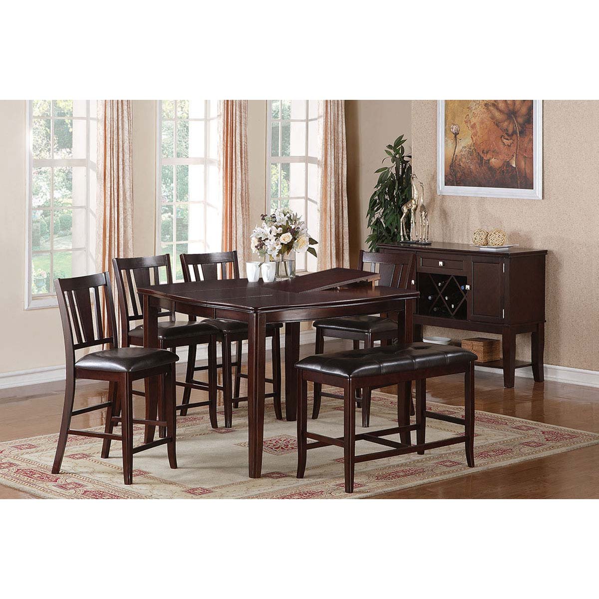 Butterfly Leaf Table. The table has a modern picnic table look that makes it easy to dress up or dress down depending on the decor. This set is ideal when finishing any dining room. Accommodate extra guests conveniently with this dining table, which includes a handy self-storing 16-inch butterfly leaf.