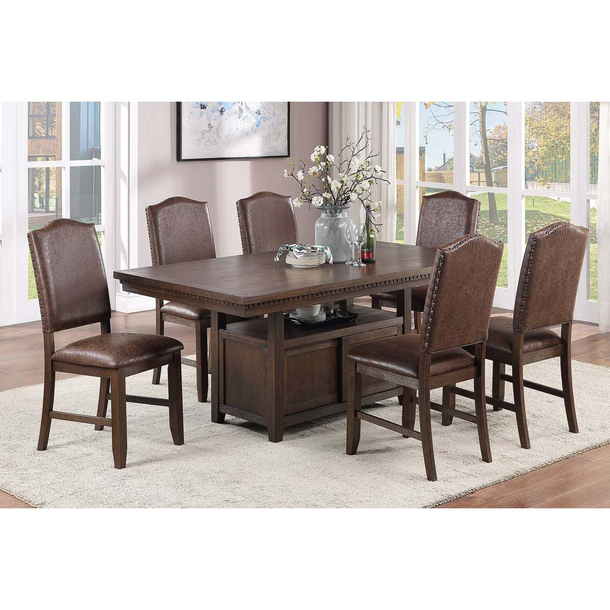 Dark Brown American Style Dining Chair. Classic wood-crafted American-style counter-height dining set. This set is designed to cater to dinner parties or large family gatherings. Perfect for bigger groups and special occasions like thanksgiving. and Christmas. with storage underneath the counter height table as well as the top of the storage, it offers extra storage in your dining room for wine and silverware.