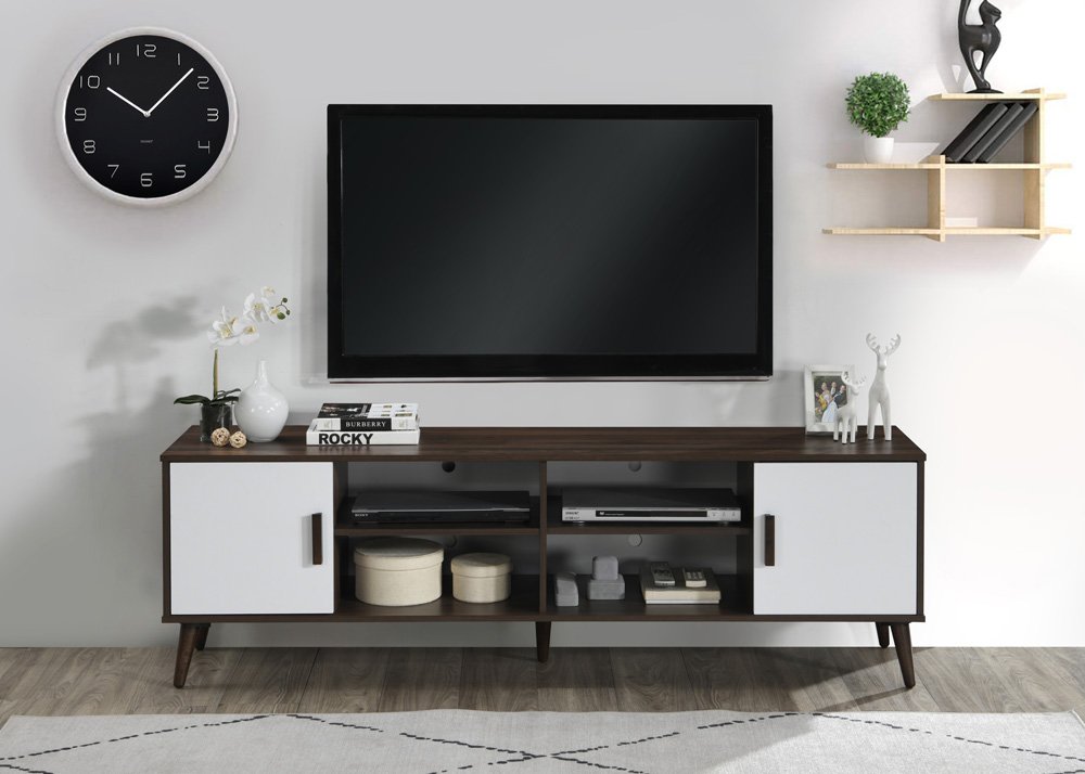 Home Living Room TV Console DARK WALNUT & WHITE Faux Wood TV Stand – 71″ L
