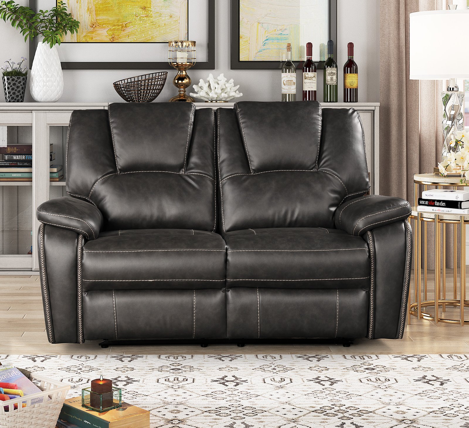 Upholstered Motion Reclining Loveseat Dark Grey