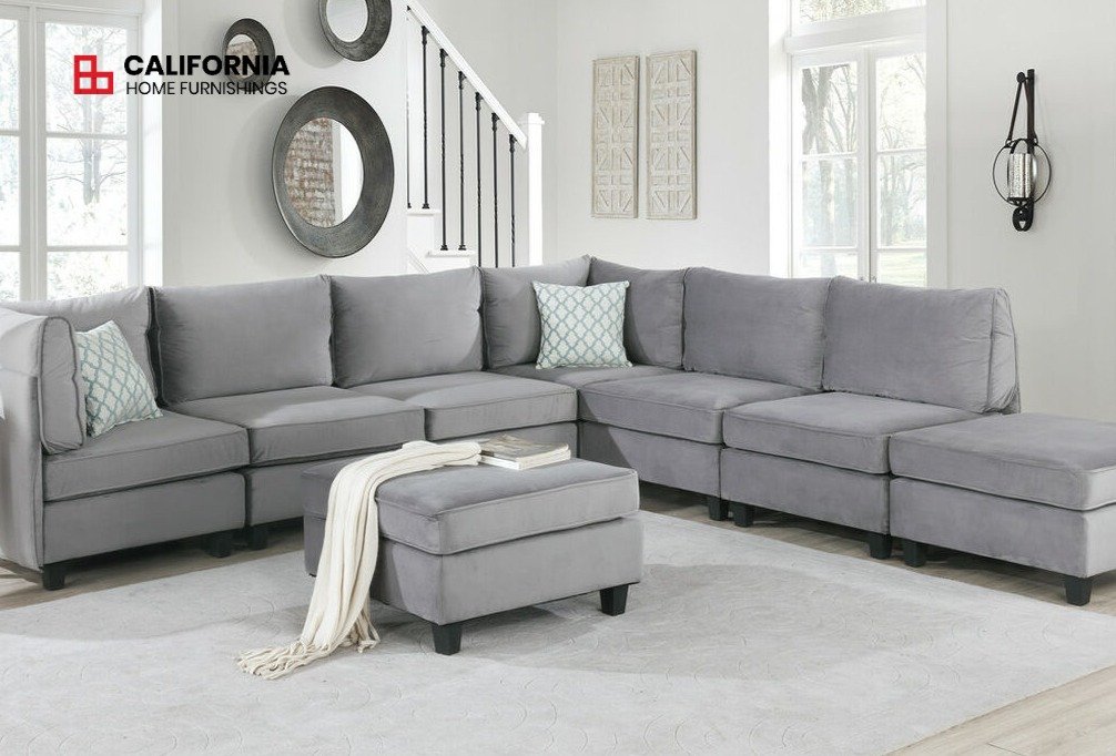 Elevate your living space with the epitome of comfort, style, and quality – the Zelmira Collection Gray Velvet 8Pc Modular Sectional Sofa. Crafted to perfection, this luxurious sectional sofa exudes contemporary elegance and versatility. Designed to seamlessly blend into any modern living room, its plush gray velvet upholstery and coordinating accent pillows add a touch of sophistication to your decor.