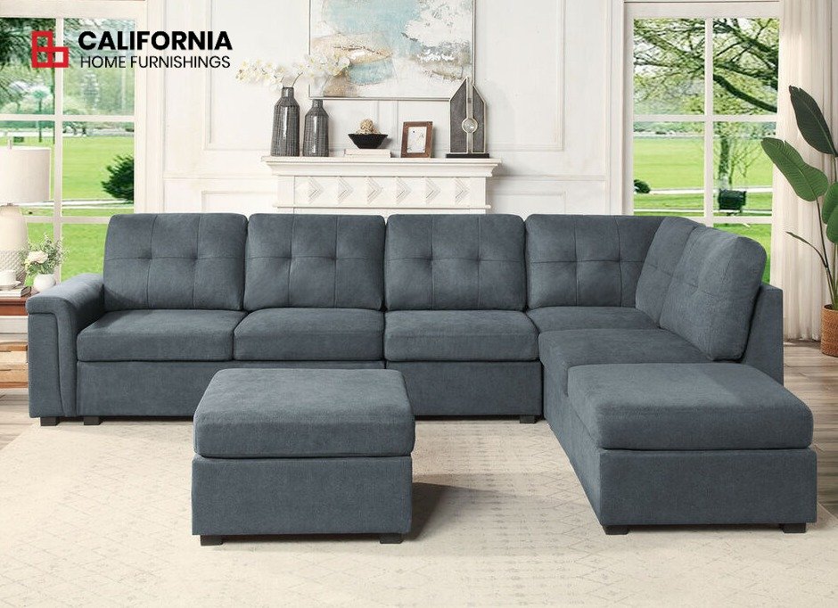 Elevate your living space with the Gray Woven 7-Seater Sectional Sofa from our Isla collection at California Home Furnishings. Crafted to accommodate large families and social gatherings, this sectional seamlessly blends stylish design with uncompromised comfort. Featuring a modular design, this sectional allows for easy rearrangement to suit any room layout, ensuring versatility and functionality. The included ottomans offer added flexibility, doubling as footrests, coffee tables, or additional seating options. Sink into luxurious comfort with padded armrests, perfect for lounging or entertaining guests. Embrace simplicity and sophistication in your home with the Isla sectional, where comfort meets chic design.