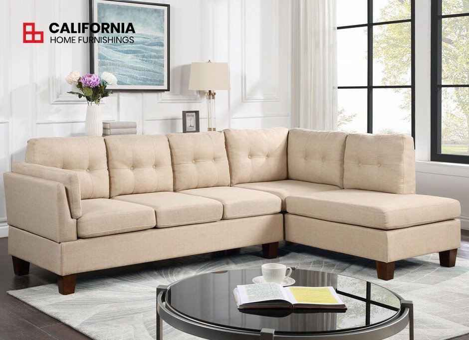 Upgrade your living space with our Linen Modern Sectional Sofa with Right Facing Chaise from the Dalia collection. Say goodbye to your old sofa and welcome modern style and comfort into your home. This L-shaped sectional sofa is designed with trendiness and relaxation in mind.