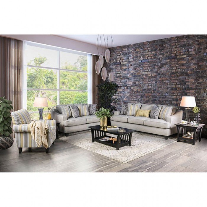 The simple, clean lines of this sofa set create the perfect piece for your fashionable contemporary look. Dress up your living room with the subtle shape of sloped track arms, loosely fitted back pillows, and T-cushion seats for a contemporary vibe that’s sure to stand out. The included throw pillows add some color and can be tucked between the arm and seat cushion for a different Decor style.